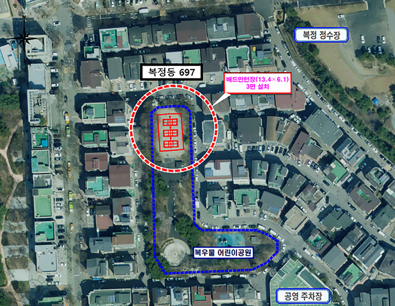 | ▲ 성남시, 복우물어린이공원 내 배드민턴장 위치도 |