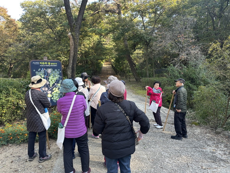 참여 어르신들은 숲길 산책, 명상, 햇살 맞기, 나무 기운 느끼기 등 다양한 활동을 통해 몸과 마음을 이완하고, 자연이 주는 치유 효과를 직접 체험했다.