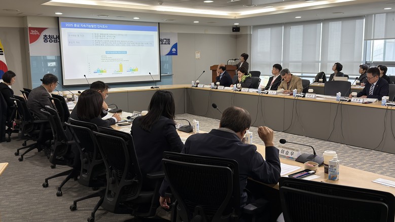 참석자들은 충남의 지속가능한 미래전략과 도민이 체감할 수 있는 실천과제 마련을 위해 지난 7월 실시한 도민 설문조사와 8월 도민 공론장에서 제시된 핵심 키워드 및 전문가 의견 등을 반영한 중간 연구결과를 꼼꼼하게 살폈다.