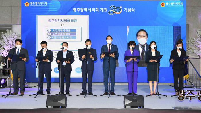 [광주=세계타임즈 손권일 기자] 광주광역시의회(의장 김용집)는 7일 오후 시의회 청사에서 의회 개원 30주년을 시민과 함께 자축하고 새로운 지방자치시대를 열기 위한 비전선포식을 개최했다.