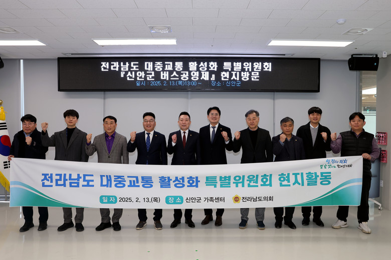 [전남 세계타임즈=우덕현 기자] 「전라남도 대중교통 활성화 특별위원회(위원장 김인정, 진도)」는 2월 13일 신안군을 방문해 버스완전공영제 추진과정과 운영 방법을 청취하고, 전라남도 내 교통 소외지역의 대중교통 활성화 방안에 대해 논의했다.