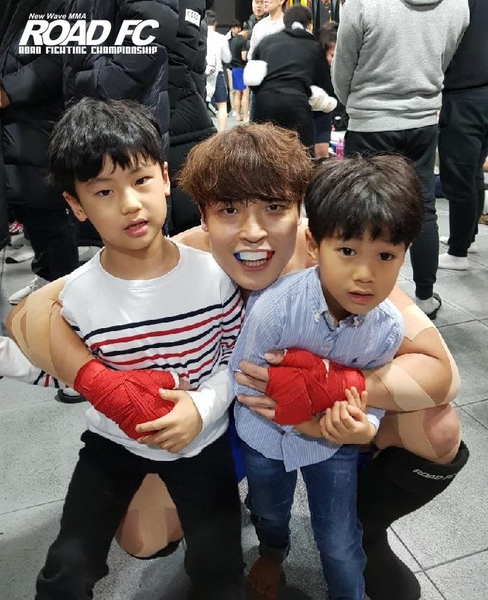 아이들의 응원을 받은 주인공은 권병균(38, 병점MMA). ROAD FC 파이터 ‘링 위의 광마’ 장대영, 김옥명과 한 팀인 파이터다.