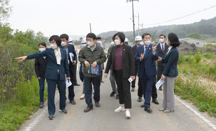 이후, 박남주 환경생태국장으로부터 지난 4월 산림청, 한국수목원관리원과 맺은 업무협약과 관련한 도심권역 산림사업 연계 방안 청취 후, 방문자센터 건축부지로 이동하여 관련 사항을 점검하였다.