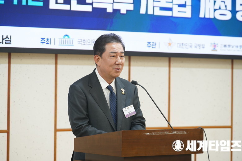 22일 서울 여의도 국회 의원회관에서 열린 군인복무기본법 개정 방안 토론회에서 더불어민주당 '김병기' 원내대표가 축사를 하고 있다.