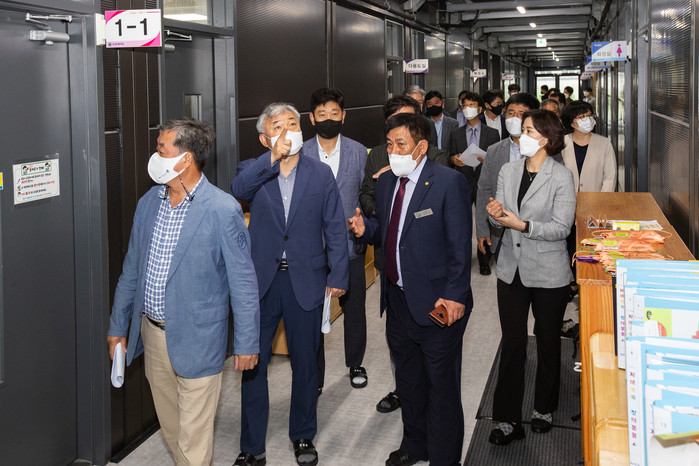 이어서 방문한 유강초등학교에서는 모듈러 임시교실 운영현황 및 시설전반에 대해 확인하면서 “학교공사에 따른 학생 수용과 안전 확보를 통해 학생들의 학습권을 보장하는 좋은 방법이지만, 기존 컨테이너보다 높은 비용과 리사이클시 내구성 저하에 대한 보완과 대책이 필요하다.”고 강조했다.