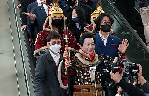 [세계타임즈 이채봉 기자]허경영 국가혁명당 대통령 후보는 18일 저녁 퇴근시간 대에 김포 경전철 골드라인 노선(김포역-구래역)에 탑승하여 지옥철을 체험하면서 김포는 앞으로 수도권의 중심이 되며 김포를 시발점으로 수도권 환승철도를 계획구상을 밝혔다.