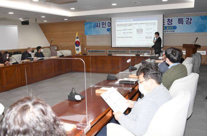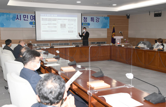 이날 특강은 의회사무처 직원 등을 대상으로 실시하였으며, 코로나19 위기상황을 감안하여 사회적 거리두기 방역수칙을 철저히 준수하며 소규모 집합교육과 비대면 교육을 병행하여 진행됐다.