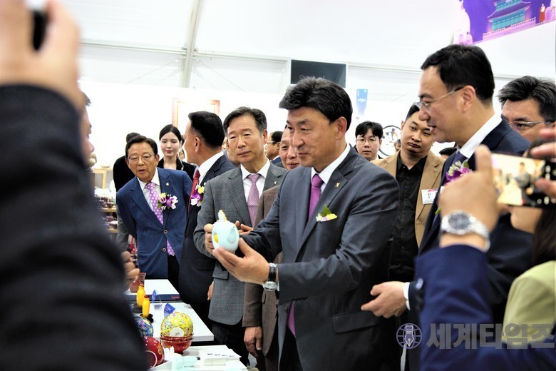 | ▲ 장광칭(국가무형문화유산)의 작품에 대하여 관계자로부터 설명을 듣는 방세환 광주시장 |