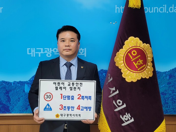 [대구=세계타임즈 한성국 기자] 대구광역시의회 교육위원회 전경원 위원장(수성구3)이 3월 3일(수) 어린이 교통안전과 보호 문화 확산을 위해 진행 중인 ‘어린이 교통안전 릴레이 챌린지’에 동참했다.