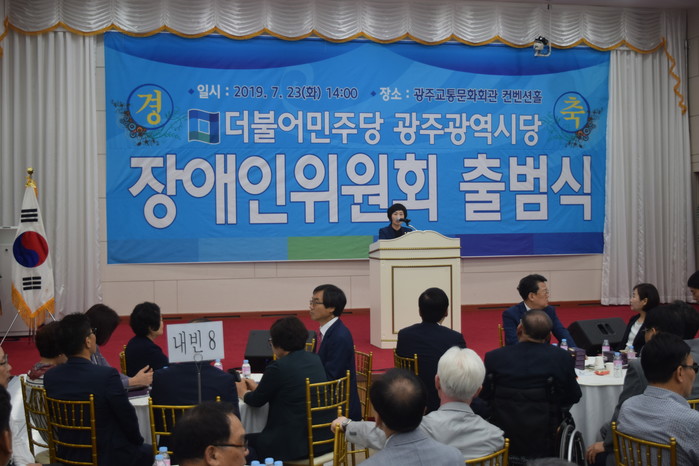 [광주=세계타임즈 손권일 기자] 더불어민주당 광주광역시당 장애인위원회(위원장:나현)은 23일 14시에 교통문화연수원 컨벤션홀에서 장애인위원회 출범식을 개최했다고 밝혔다.