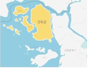인천시 북서쪽에 위치한 강화. 강화도 본도와 교동도, 석모도 등 주민이 살고 있는 섬 11개와 무인도 18개로 이루어져 있다.