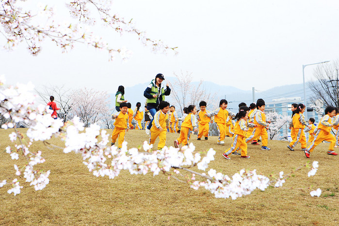 의왕시청 앞 잔디밭은 평소 아이들이 뛰어 놀며 즐기는 인기장소이다. 특히, 아름다운 벚꽃이 피는 봄에는 이곳 잔디밭을 찾는 가족, 연인들의 발길이 끊이지 않고 있다.
