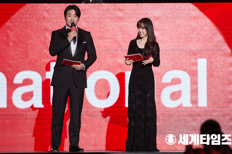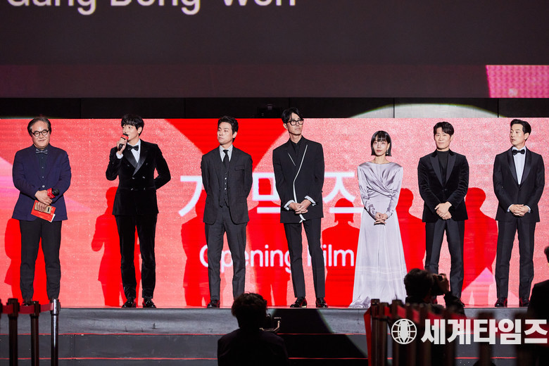 제29회 부산국제 영화제 개막식에 참석한 배우'조진웅'이 포즈를취하고있다.