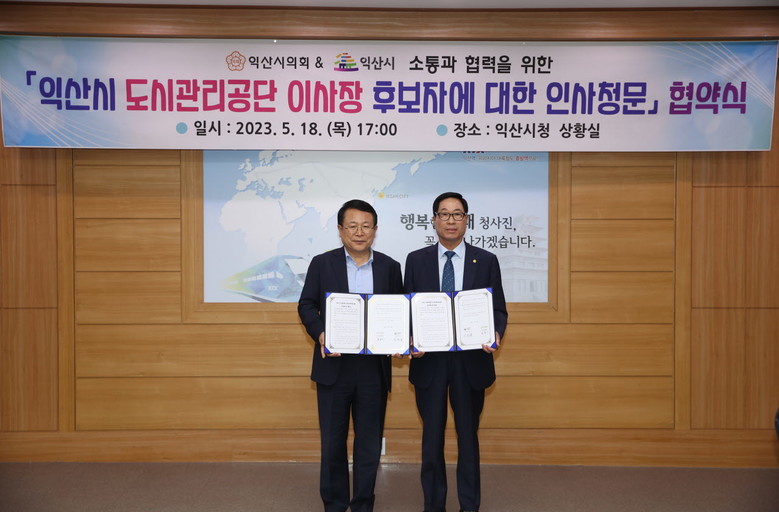 이는 도시관리공단 이사장을 임명하기 전 시의회에 후보자의 정책검증 청문을 요청하도록 하자는 익산시의회의 제안을 익산시가 받아들이면서 이뤄졌다.