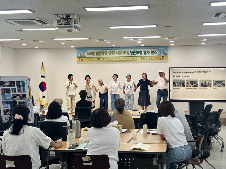 방과후 농촌체험 교육 프로그램의 품질 향상과 현장 강사의 전문성 강화를 목적으로 마련한 이번 연수는 농촌체험 강사 48명을 대상으로, 1기(7월 22-23일)와 2기(8월 12-13일)로 나눠 진행했다.