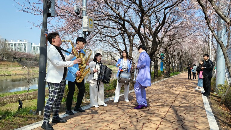 우선 안양천과 도심 광장에서 ‘봄따라 꽃따라 버스킹’ 공연이 펼쳐진다. 4일 오후 3시 안양천 벚꽃길에서 어쿠스틱 듀오밴드 ‘닮은’의 공연이 열리고, 18일에는 가산 현대아울렛 광장에서 밴드 ‘스미어’의 공연이 개최된다.