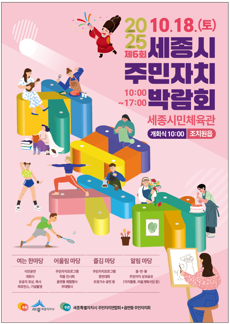 이상호 자치행정국장은 “이번 박람회는 주민이 직접 기획하고 참여하는 세종형 자치의 현재를 보여주는 자리로, 시민의 자발적 참여와 협력은 세종의 미래를 밝히는 힘이 될 것”이라며 “앞으로도 주민자치가 더욱 발전할 수 있도록 꾸준히 지원하겠다”고 말했다.