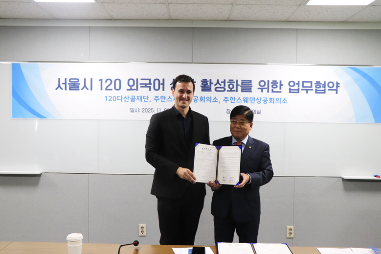 이이재 서울시 120다산콜재단 이사장은 “서울시 대표 민원상담 창구인 120다산콜과 스페인·스웨덴 상공회의소가 협력함으로써, 스페인과 스웨덴 국적 경제인들이 보다 편리하게 서울에서 생활할 수 있도록 적극 지원할 것”이라며 “앞으로도 외국인 시민을 위한 다국어 상담과 글로벌 교류 확대에 힘쓰겠다.”고 밝혔다.