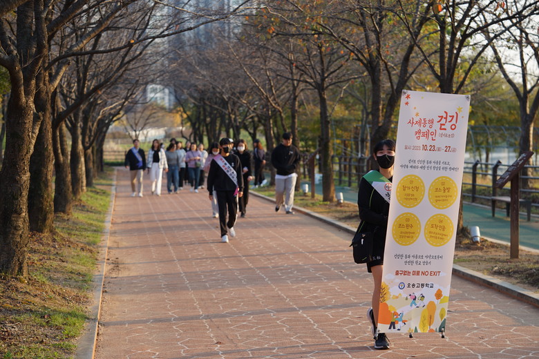 [충북 세계타임즈=이현진 기자] 오송고등학교(교장 조선진)는 23일(월)부터 27일(금)까지 일주일간 마약류 예방 및 홍보를 위한 「사제동행 걷깅(걷기와 조깅) 캠페인」을 진행하고 있다.