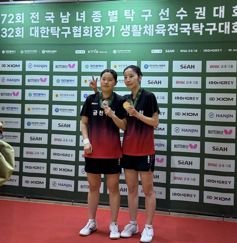 [금천구 세계타임즈=이장성 기자] 금천구(구청장 유성훈)는 3월 20일부터 3월 27일까지 대전광역시 한밭체육관에서 열린 ‘제72회 전국남녀종별탁구선수권대회’에서 금천구청 여자탁구단이 개인복식에서 준우승, 개인단식에서 3위를 차지했다고 밝혔다.