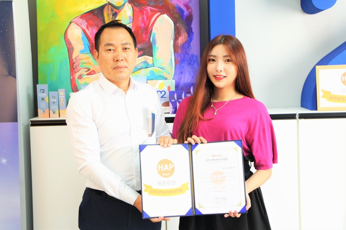 이날 기업, 단체, 동호회 등 복지형 종합쇼핑몰인 하프마켓(hap-market)과 화장품 브랜드 M2(엠투)데일리더마 브랜드를 운영하는 주식회사 엠투디바인은 2019년 8월 17일 유튜브, 인스타그램등 SNS에서 활발하게 활동하는 인플루어선서분들을 모시고 하프마켓 공식 후원모델 임명식을 가졌다.