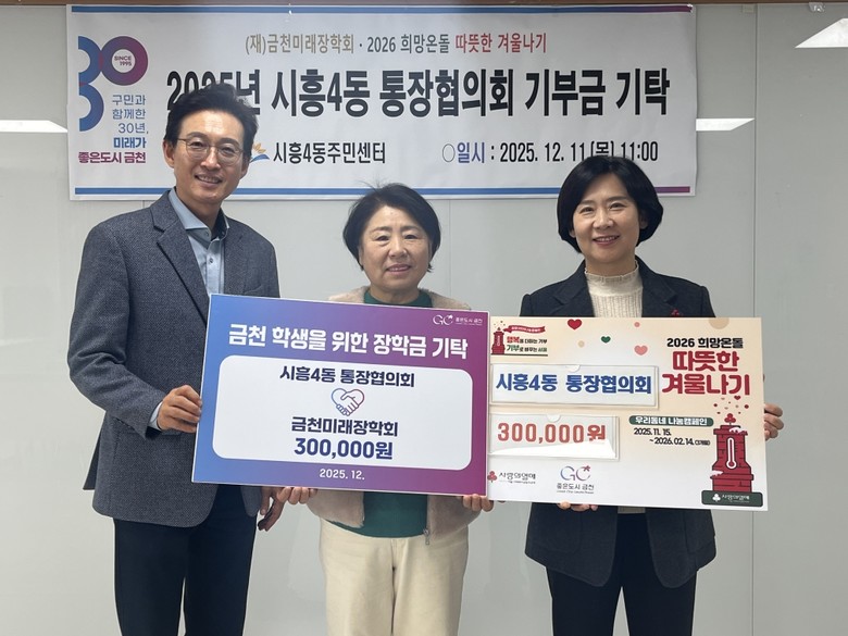 같은 날 시흥4동 통장협의회(회장 박정숙)에서 연말을 맞아 성금과 장학금을 각각 30만 원씩 기탁하기도 했다.