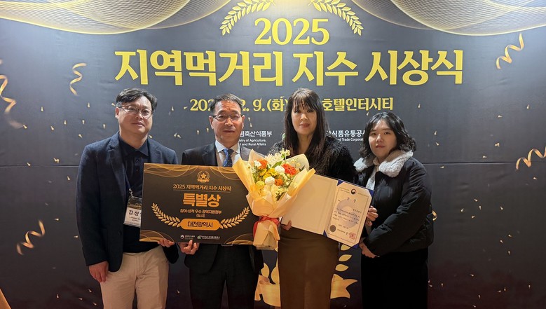 [대전 세계타임즈=이채봉 기자] 대전시는 농림축산식품부와 한국농수산식품유통공사(aT)가 주관한‘2025년 지역먹거리 지수 평가’에서 특.광역시 중 유일하게 농림축산식품부 장관 특별상을 수상했다.