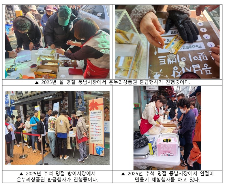 - 설 성수품 구매 시 1인 최대 2만원, 할인·체험도 풍성 - [송파구 세계타임즈=이장성 기자] 서울시 송파구(구청장 서강석)는 설 명절을 앞두고 소비자 물가 부담을 덜고 전통시장 소비를 촉진하기 위해 오늘부터 관내 전통시장 및 상점가 7곳에서 온누리상품권 환급 행사를 실시한다고 밝혔다. 행사는 준비된 상품권이 소진될 때까지 진행된다.
