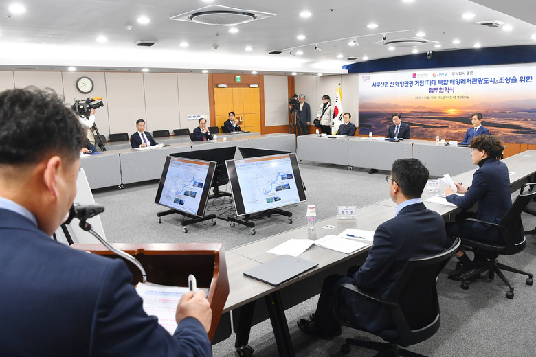 ◈ 박형준 시장, “다대포 일원을 해양·해안·지역문 [부산 세계타임즈=이용우 기자] 부산시는 오늘(6일) 오전 10시 30분 시청 영상회의실에서 해양수산부가 추진하는 「복합 해양레저관광도시 조성」 공모사업에 참여하기 위해 사하구, ㈜엘튼과 업무협약(MOU)을 체결한다고 밝혔다.
