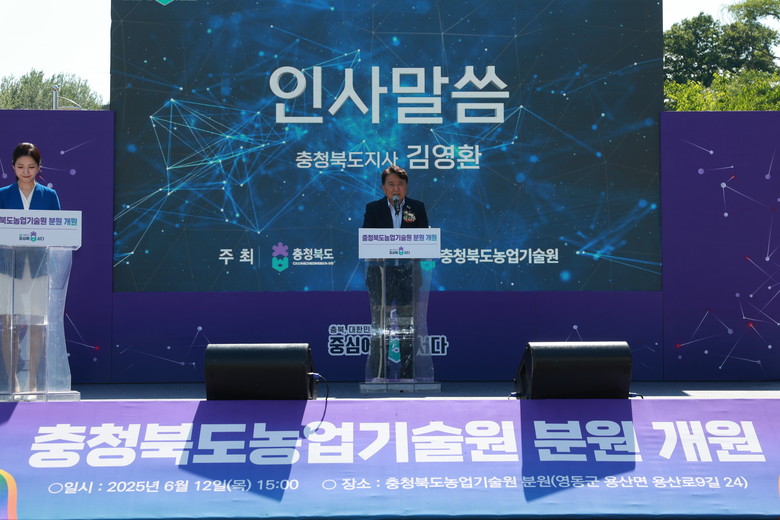 이날 행사는 오후 3시부터 김영환 도지사의 인사말을 시작으로 △영동난계국악단의 축하공연 △테이프 커팅 △기념촬영 △조직배양실과 무병묘 순화온실 등 핵심시설 관람 순으로 진행됐다. 행사에 앞서 오후 1시에는 ‘남부권 스마트농업 및 과수묘목 산업 발전방안’ 심포지엄도 열렸다.