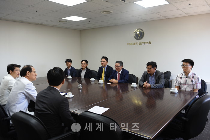 지난 20일 경기도 수원시에 자리한 아주대학교의료원 별관 5층 회의실에서 윤권하 원광대병원의생명연구원장, 유희석 아주대의료원장 및 관계자 일행이 참석한 가운데 열린 업무협약식에서 양 병원은 상호 발전을 위한 협조를 강화해 나가기로 했다.