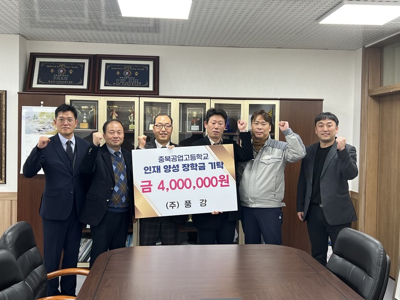 [충북 세계타임즈=이현진 기자] 충북공업고등학교(교장 정성교)는 5일(금), 교장실에서 ㈜풍강(대표이사 김진용)의 ‘인재 양성 장학금 기탁식’을 실시하였다.