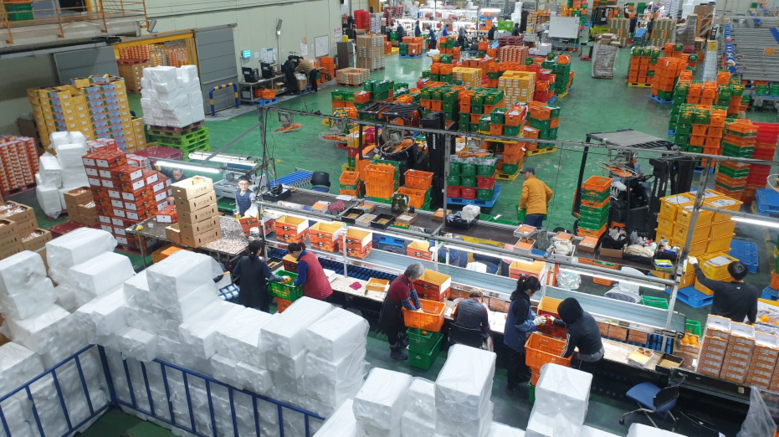 제주 감귤 유통센터 근무여건은 주 5일(매일 8시간) 근무, 4대 보험 가입, 중식 제공 등이며‘감귤농협-근로자 간 근로계약 체결’후 감귤유통센터에서 감귤 선별.세척.포장.운반 등 작업을 한다.
