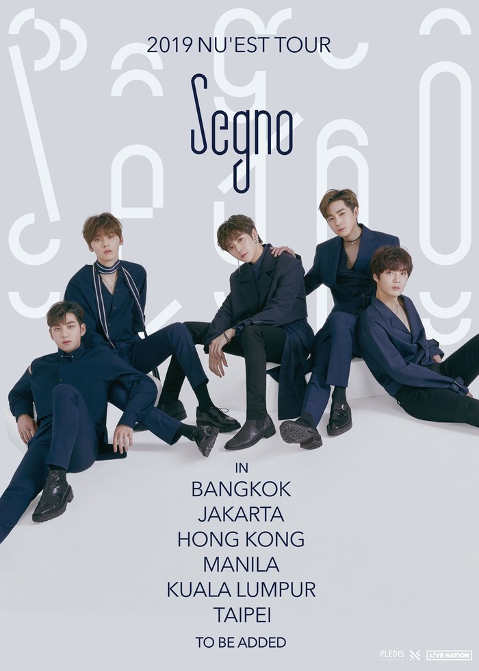 공개된 포스터에 따르면 뉴이스트의 해외 투어 ‘2019 NU’EST TOUR ‘Segno’’는 방콕을 시작으로 자카르타, 홍콩, 마닐라, 쿠알라룸푸르, 타이베이 총 6개의 도시에서 펼쳐질 예정이다. 이 외에도 투어 도시가 추가될 것임을 알려 전 세계적 인기를 입증, 국내뿐만 아닌 해외에서도 뜨거운 반응을 얻고 있다.
