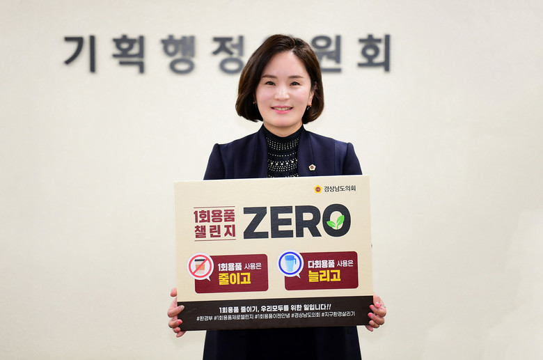 [경남 세계타임즈=최성룡 기자] 박진현(국민의힘·비례) 경남도의원이 27일 일상생활 속에서 1회용품 사용을 줄이기 위한 실천을 약속하는 ‘1회용품 제로 챌린지’에 동참했다.