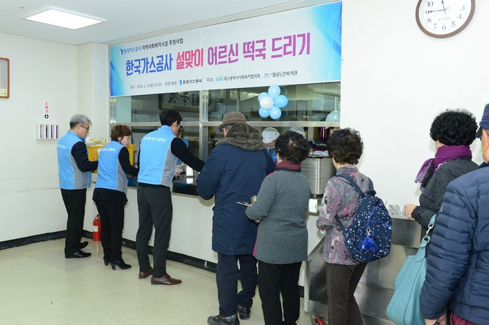 [세계타임즈 박유석 기자]한국가스공사(사장 정승일)가 2월 13일 대구광역시 동구 소재 팔공노인복지관에서 설맞이 어르신 떡국 나누기 행사를 열었다.