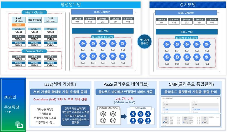 경기도가 구축한 클라우드시스템은 CPU, 메모리와 같은 자원 증설이 필요할 때 기존처럼 물리적인 장비를 추가 구매하지 않고 이미 구축된 클라우드 서버에 필요한 자원만 추가로 늘려 대응이 가능하다. 일부 서버에 장애가 발생하더라도 다른 서버가 대신 처리하도록 자원을 풀(pool) 형태로 구성해, 장애 시에도 더 빠르게 복구가 가능하며, 새로운 행정서비스 도입 시 서버 자원을 유연하게 할당해 소프트웨어(S/W)와 서비스 제공의 속도와 품질이 함께 향상된다.
