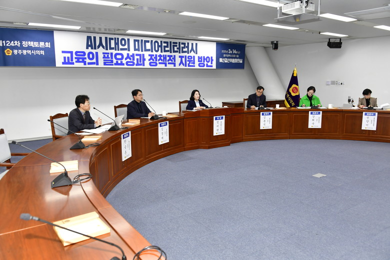 임미란 의원이 좌장을 맡고, 토론자로는 김경백 전남대학교 소프트웨어공학과 교수, 한승훈 동신대학교 경찰행정학과 교수, 강희숙 조선대학교 국어국문학과 교수, 정향미 광주광역시교육청 중등특수교육과 장학관이 참여해 다양한 의견을 제시했다.