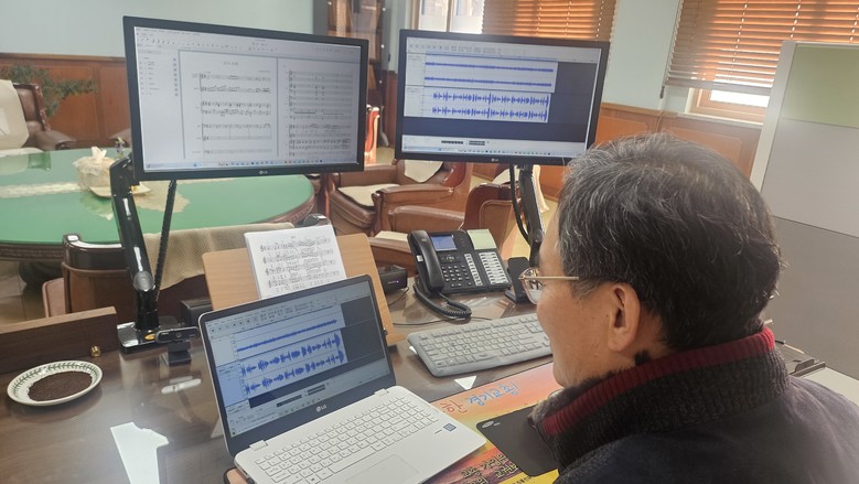 교장 선생님은 미디 음악으로 현악기, 타악기를 사용하여 학생들이 즐겁게 부를 수 있도록 교가의 반주 음원을 직접 편곡 녹음하였다. 또한, 새롭게 편곡된 교가의 반주에 맞춰 교가를 부를 본교 3~6학년 학생을 선발하여 노래 지도까지 하여 교가 음원을 완성하였다. 새롭게 제작된 교가 음원은 교내 각종 행사와 학교 홍보에 활용할 예정이다.