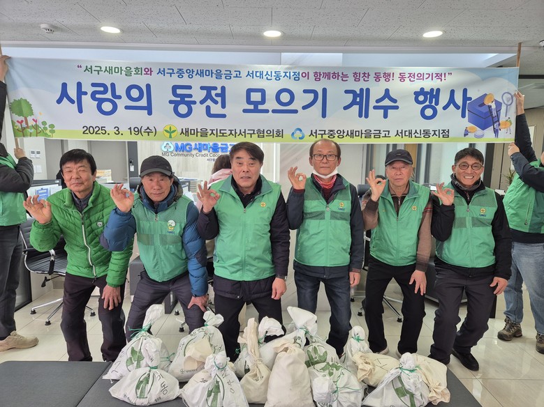 [서구 세계타임즈=이용우 기자] 새마을지도자서구협의회(회장 김대중)와 서구중앙새마을금고 서대신동지점(이사장 김무현)은 19일 사랑의 동전 모으기 계수 행사를 개최하였다. 새마을지도자서구협의회는 카드 사용 증가로 곳곳에 숨어 있는 동전을 회수, 유통해 동전 제작비를 절감하고, 모여진 동전으로 관내 소외되고 어려운 이웃들을 돕기 위해 사업비로 사용할 예정이다.