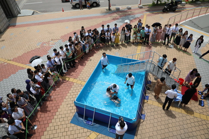 행사 둘째 날 프로그램의 가장 두드러진 행사는 그리스도인이 된다는 것을 공개적으로 알리는 ‘침례’였다. 그동안 성경을 공부하면서 없어지지 않는 사랑을 앞으로의 인생에서 계속 나타내겠다는 굳은 결심을 한 사람들이 예수 그리스도가 약 2000년 전에 하였던 똑같은 방식으로 물 침례를 받았다.