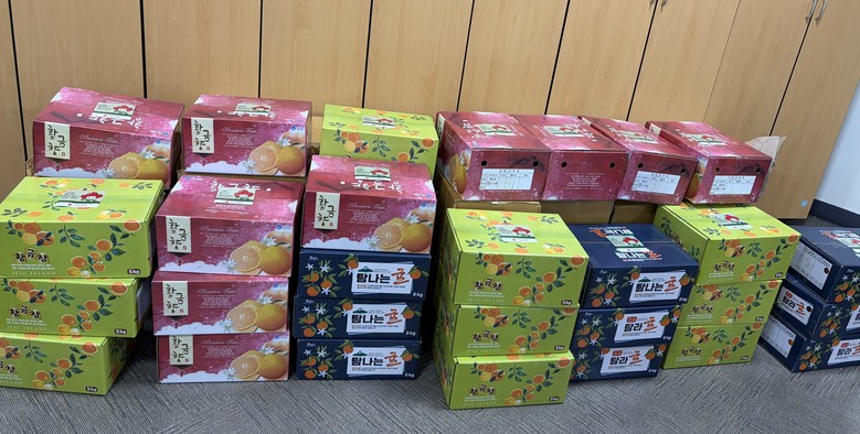 그는 고향처럼 생각하는 한솔동의 어려운 이웃에게 나눔을 전하기 위해 직접 수확한 황금향과 조생귤을 기부했다.