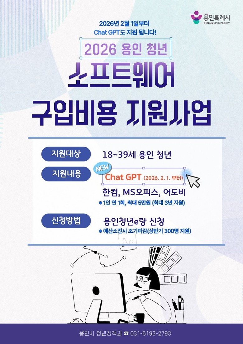 대상은 용인에 주민등록을 둔 18~39세 청년이다. 1인당 연 1회 최대 5만 원, 생애 최대 3회까지 소프트웨어 구입비를 지원받을 수 있다.