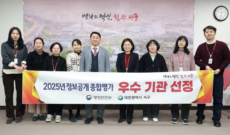 [서구 세계타임즈=이채봉 기자] 대전 서구가 행정안전부 주관 2025년 정보공개 종합평가에서 우수 기관으로 선정됐다.
