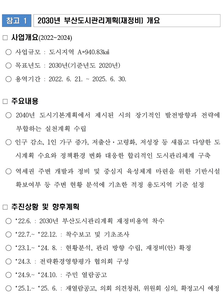 자세한 사항은 열람 장소와 시 누리집 부산도시계획아고라(www.busan.go.kr/depart/agora00)에서 확인할 수 있으며, 의견제출도 가능하다.