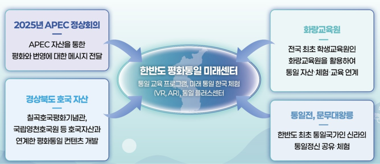 도는 분단 80년 세월 동안 국민의 통일 의식은 약해지고 청년들이 통일에 대한 필요성을 체감하지 못하고 있다고 판단하고 호국, 화랑, 선비, 새마을이라는 국가적 정신을 품고 있는 경북에서 APEC을 계기로 평화통일의 불씨를 살리겠다는 전략이다.