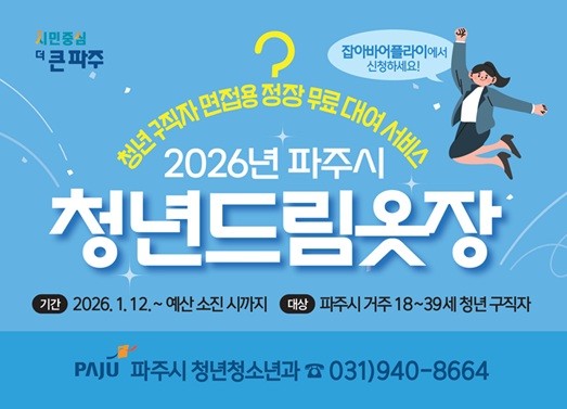 사업 이용 대상은 파주시에 거주하거나 관내 고등학교 졸업예정자 또는 관내 대학교 재학(휴학) 중인 18~39세 이하의 청년 구직자이며, 1인당 연간 최대 4회까지 면접 정장을 무료로 대여할 수 있다.