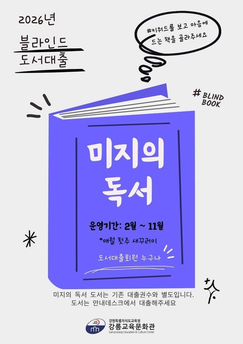 교육문화관 관계자는 “10명의 사서가 매월 90권의 도서를 선정해 새로운 분야의 독서를 제안하고, 알려지지 않은 양질의 자료를 자연스럽게 접할 수 있도록 돕는다”며 “이번 프로그램을 통해 도서관 자료 이용의 폭을 넓히고, 일상적인 자료실 방문과 도서 대출에 즐거움을 더할 수 있을 것으로 기대한다”고 말했다.