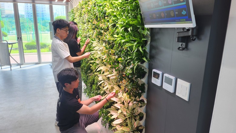 스마트팜과 학생들이 직접 공기정화 식물의 종류 선정부터 배치 설계, 식재까지 전 과정에 참여하였으며, 이 과정을 통해 다양한 공기정화 식물의 특성을 이해하고, 첨단 바이오월 원격 관리 시스템을 활용해 스마트팜의 기초 기술을 실습할 수 있는 살아있는 교육장을 완성했다.