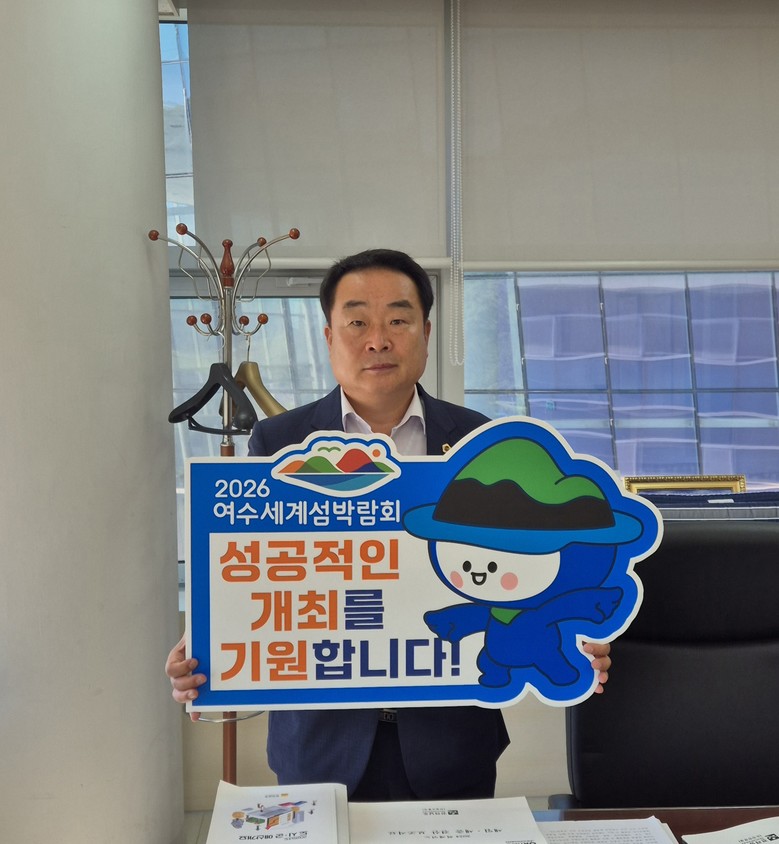 [전남 세계타임즈=우덕현 기자] 전라남도의회 안전건설소방위원회 최무경 의원(더불어민주당, 여수4)이 지난 7월 28일 ‘2026여수세계섬박람회’의 성공 개최를 기원하는 릴레이 응원 챌린지에 동참하며 박람회에 대한 관심과 참여를 독려했다.